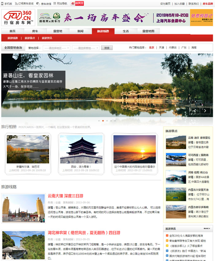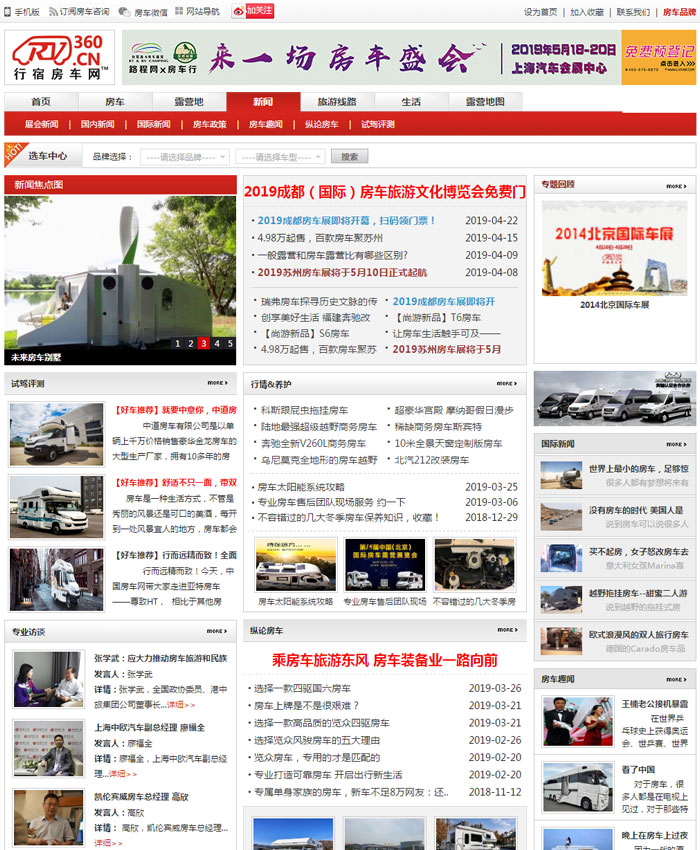 行宿房车行2013年10月,新版本正式上线,由现有的新闻、房车、生活三大频道扩充增加宿营地、旅游线路、曝光台等。